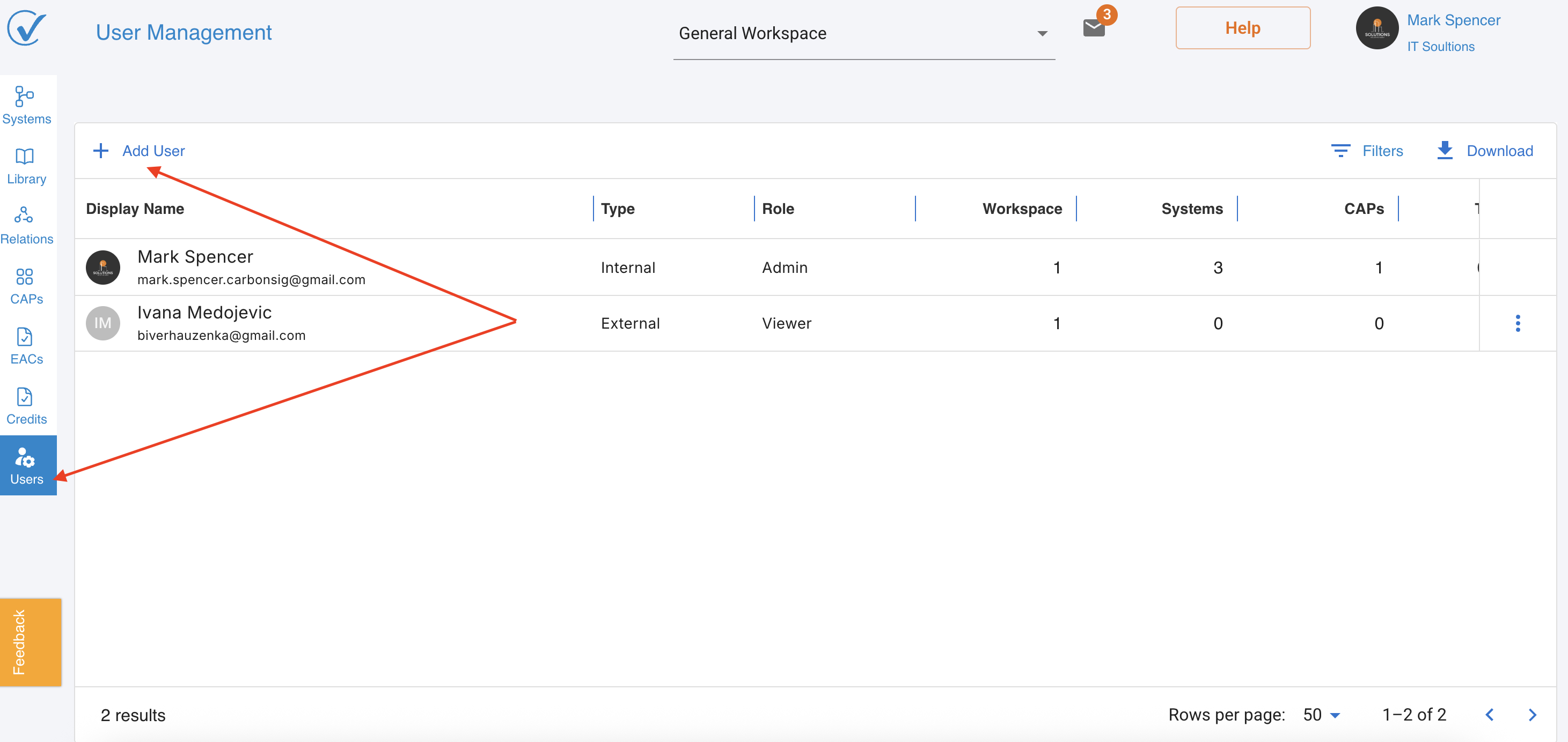 As an admin, you can add new users to your CarbonSig account through the User Management section. This guide walks you through inviting both internal team members and external collaborators.
