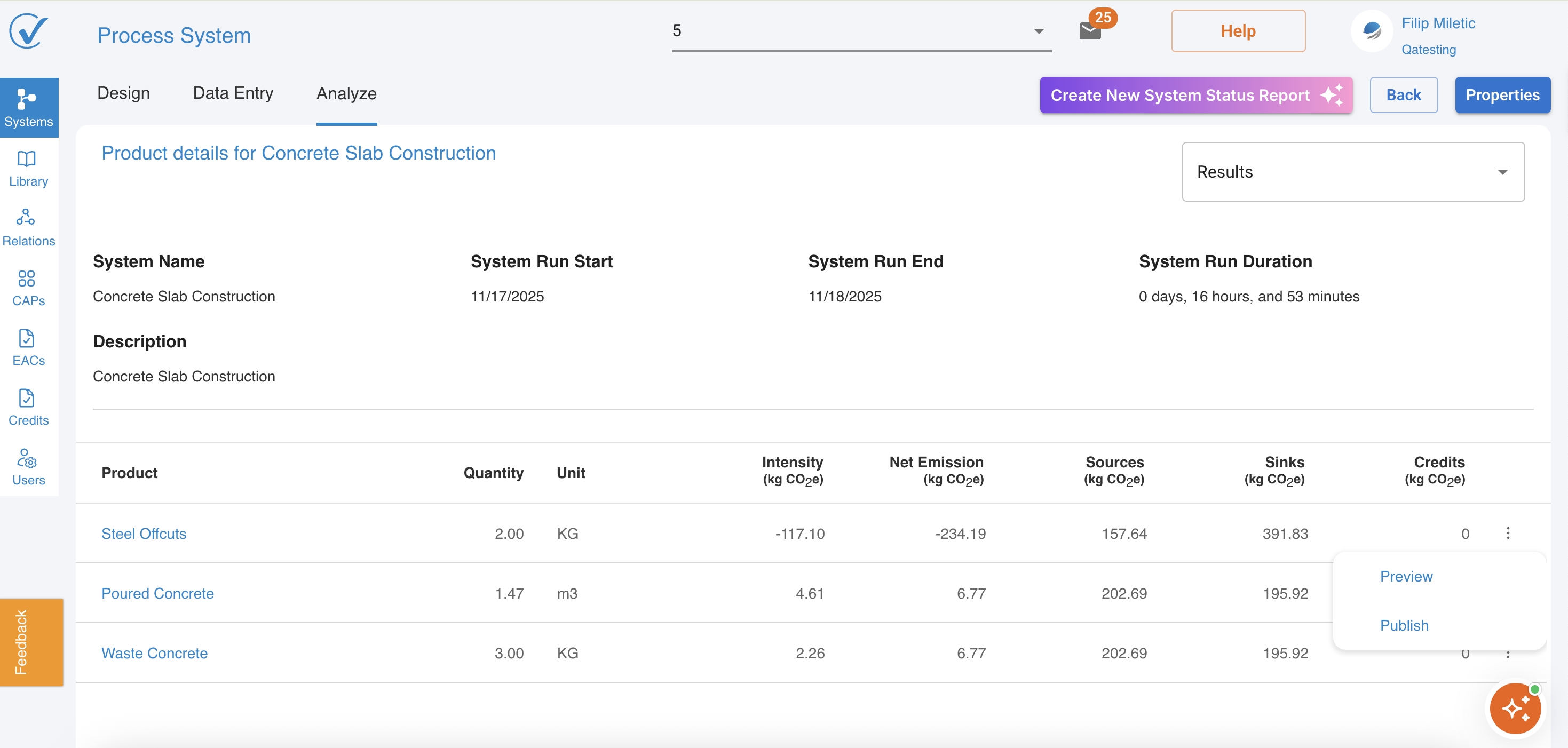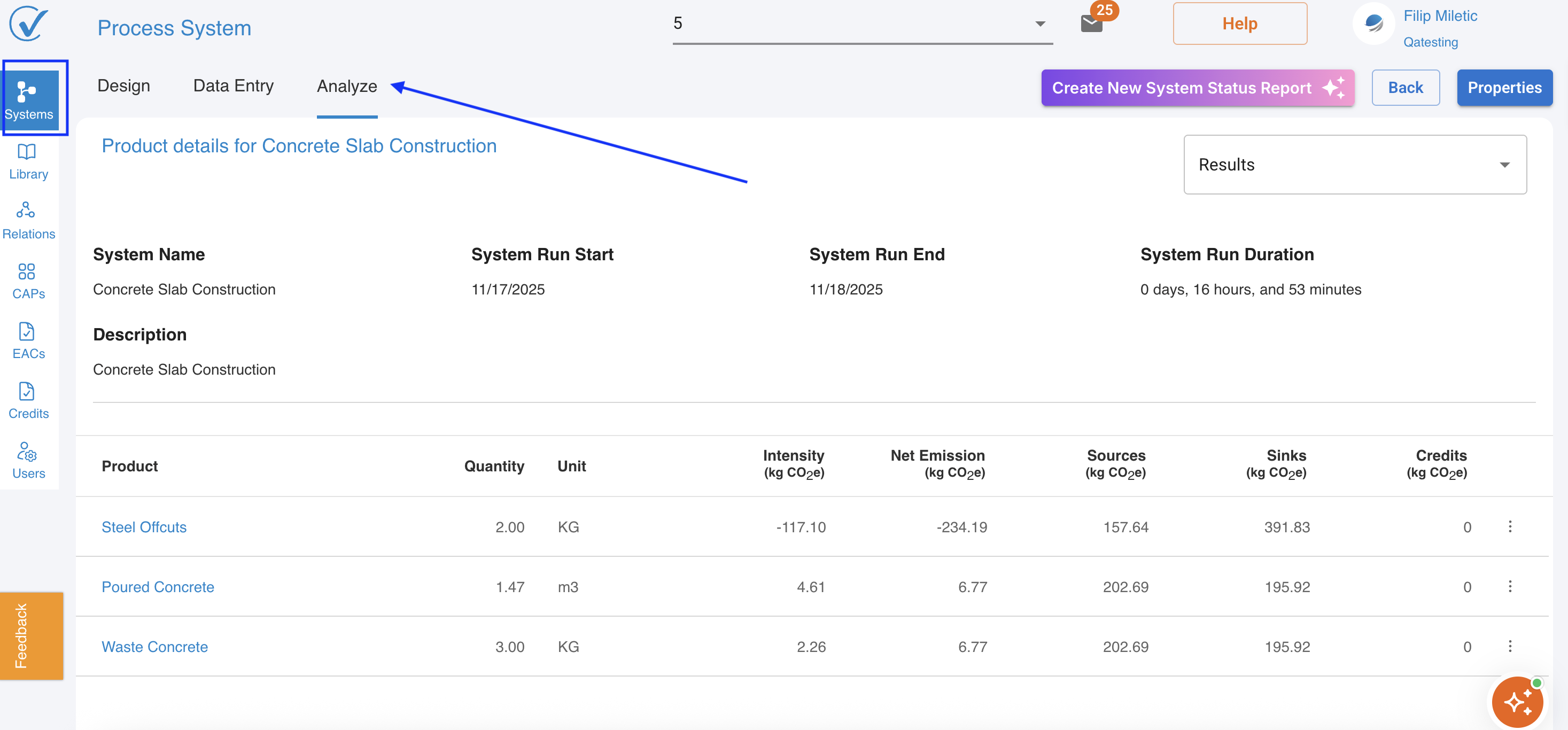 The Analyze tab displays the calculated results of your system after you've completed data entry. Here you'll see: