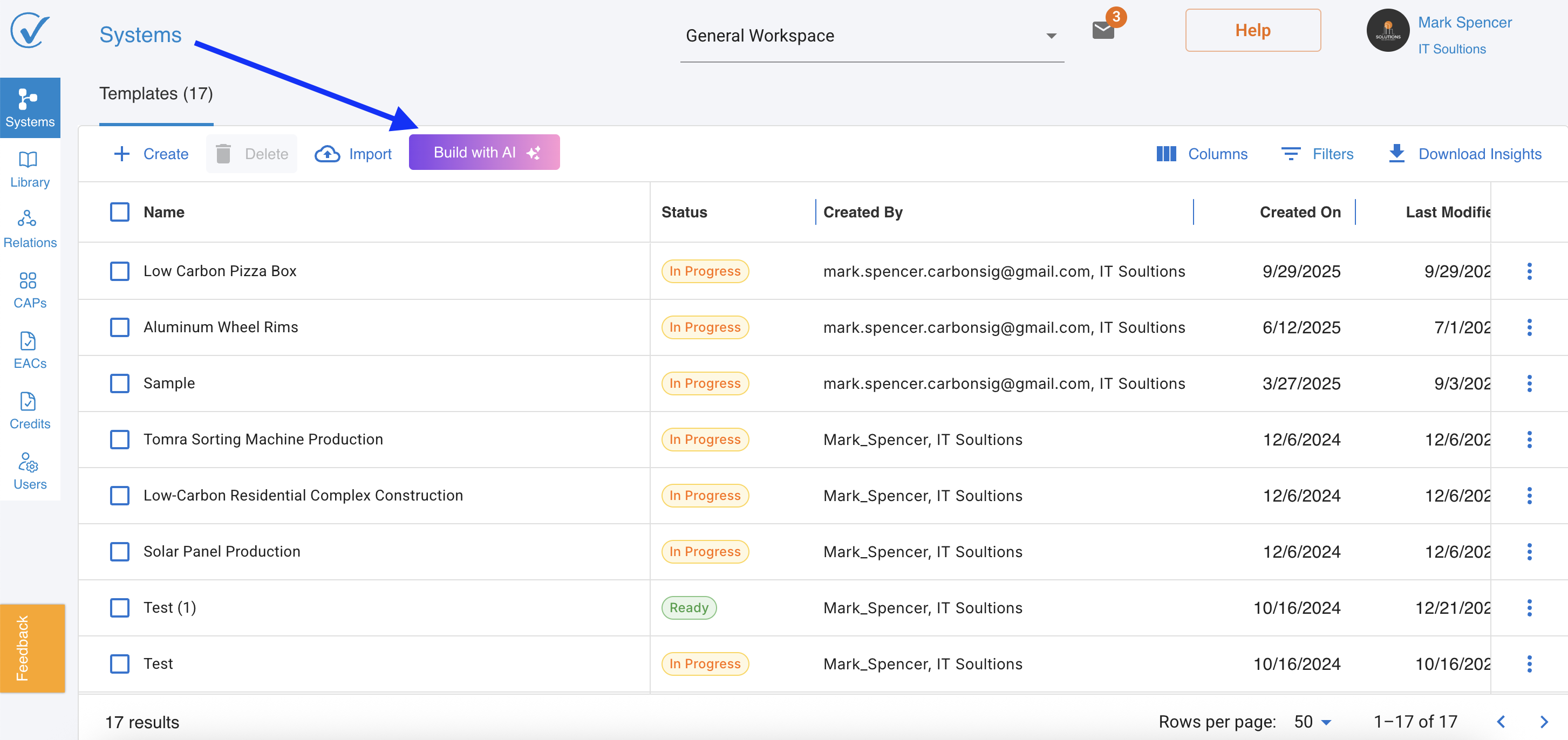 AI-powered system builder, Build with AI, artificial intelligence, system template creation, carbon footprint automation, LLM carbon accounting, machine learning emissions, automated template generation, AI carbon modeling, process template automation, emission data AI, intelligent system design, carbon accounting automation, AI-assisted carbon calculation, smart template builder, CarbonSig AI features