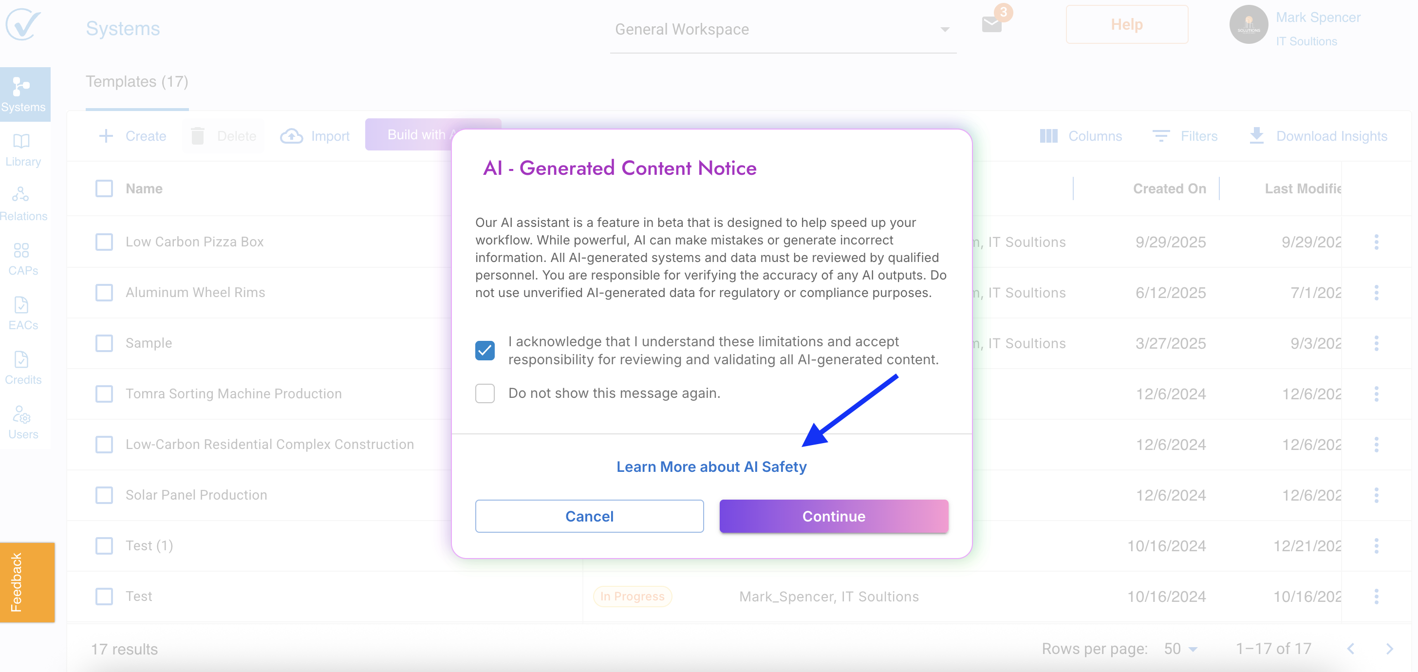 Important Reminder: AI is a powerful assistant designed to accelerate your workflow. However, all AI-generated systems and data must be reviewed by qualified carbon accounting professionals before use in regulatory reporting or compliance documentation.