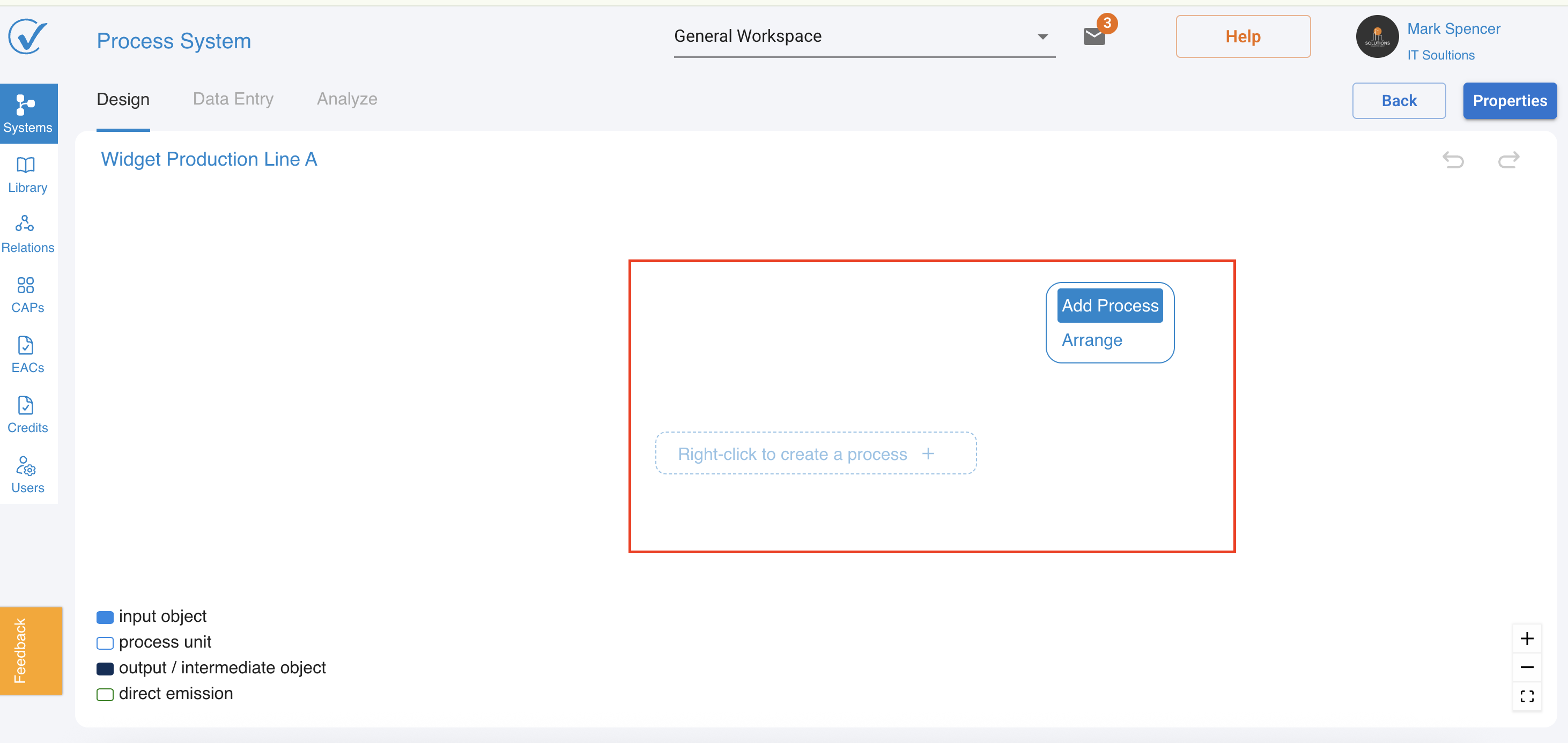 Define your process: Name, Economic categorization, Sub Categorization, Description and Notes