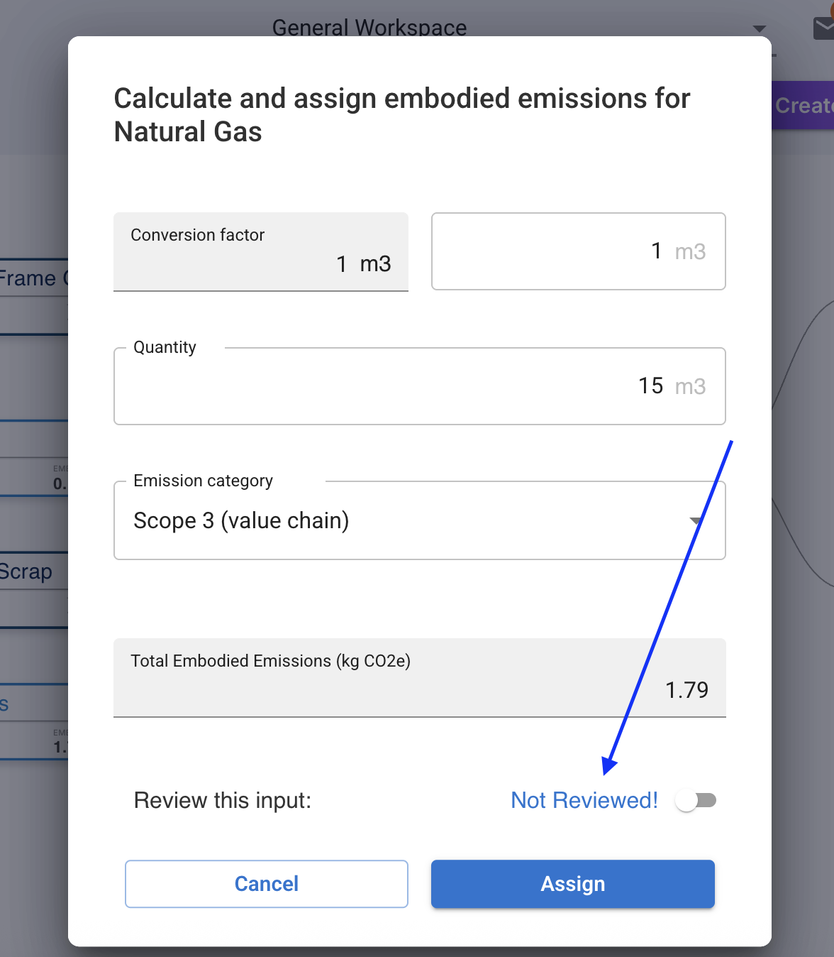 - Emission factor suggested by "Suggest LCI with AI" but not reviewed