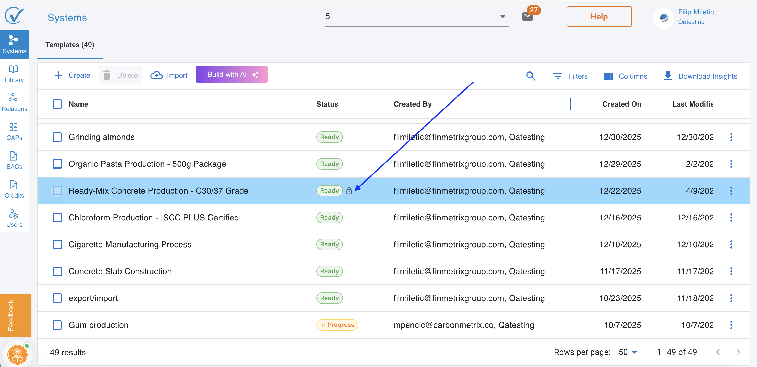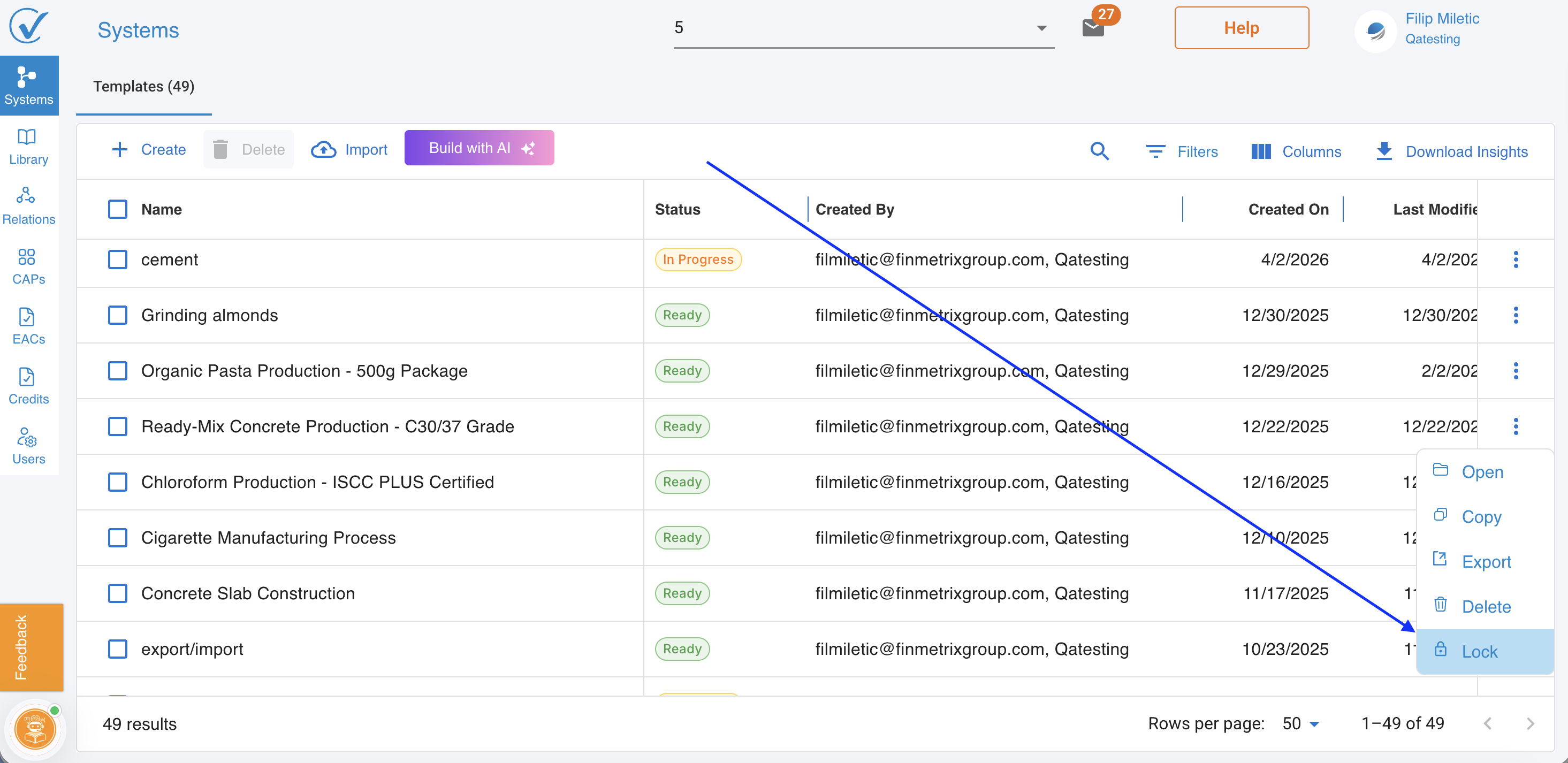 Admins and Editors can lock one or more systems directly from the System page. A locked system enters view-only mode β editing is disabled, but Copy and Export remain available.