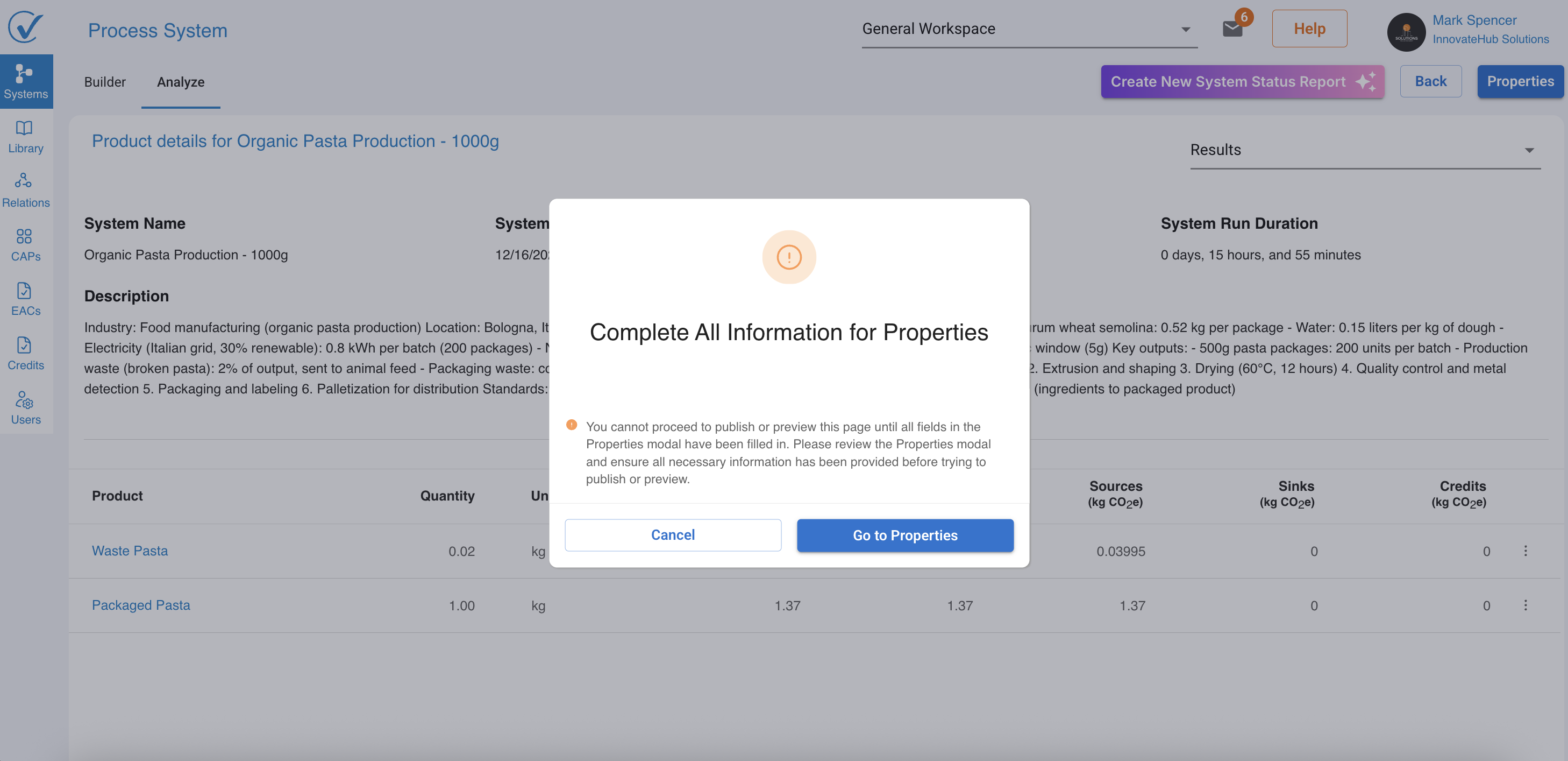 Publishing transforms your completed system into a Carbon Attested Product (CAP), a verified document that certifies the carbon intensity of your product. This certificate can be shared with customers, used in supply chain collaboration, or submitted for third-party verification.