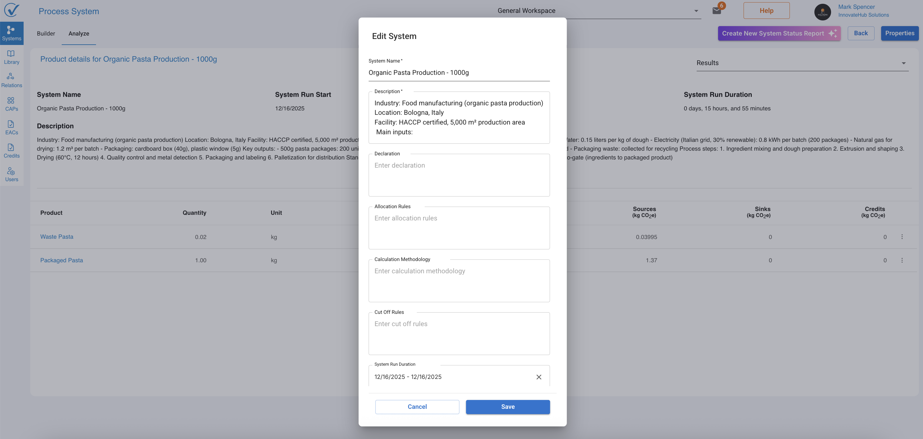 - Certificate name: "Packaged Pasta first batch" or "Organic Pasta Production - 1000g"