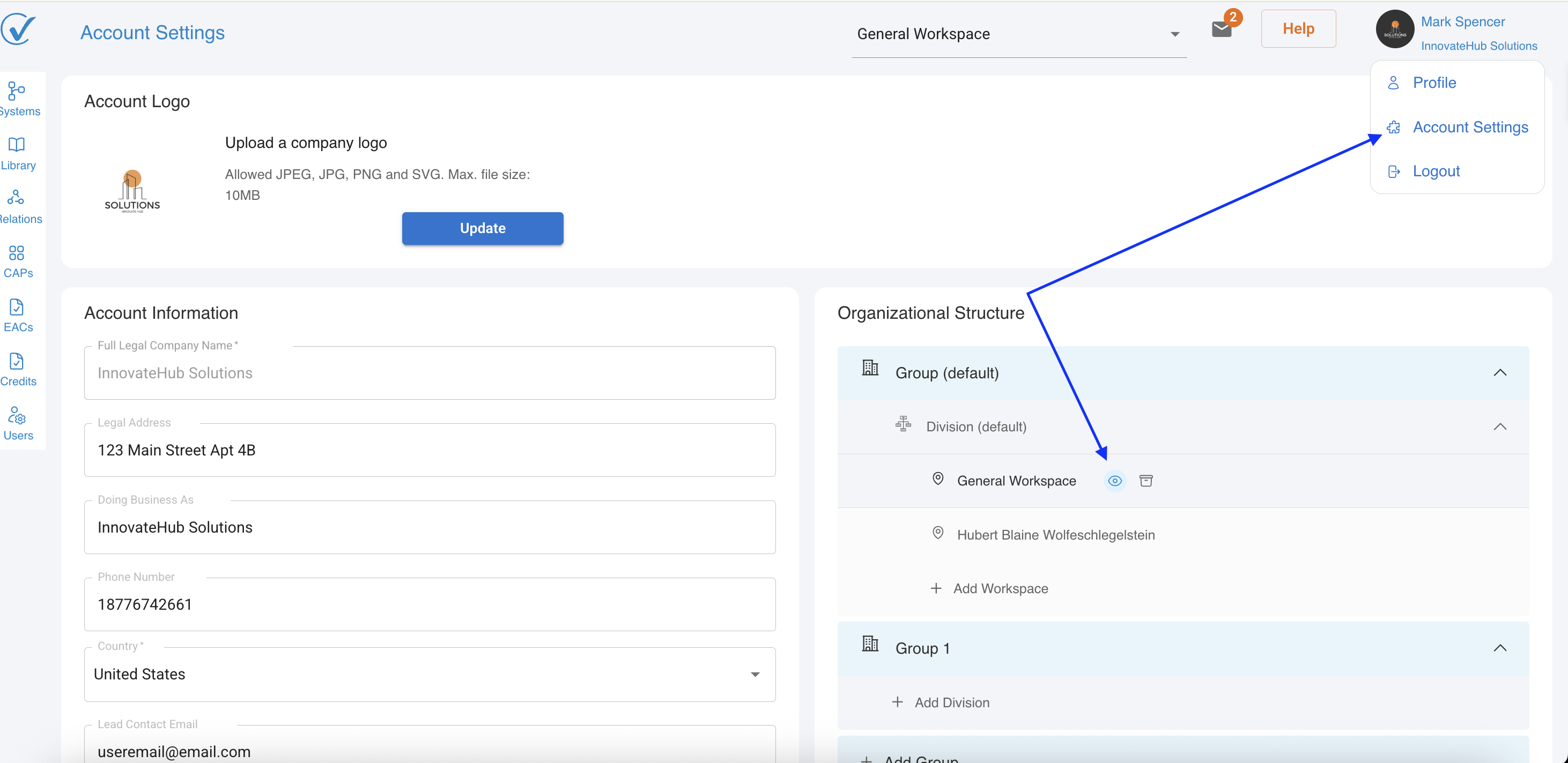 - CAPs are automatically assigned to the Workspace that the system is assigned to.