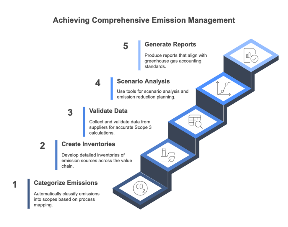 CarbonSig ayuda a las organizaciones a rastrear y gestionar emisiones a través de los tres alcances mediante: