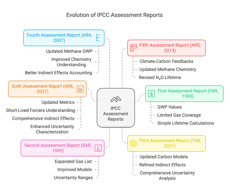 Evolución de los Informes de Evaluación del IPCC y Potenciales de Calentamiento Global