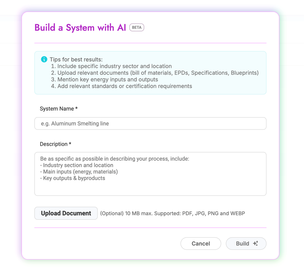 ¡Experimente una manera más inteligente y rápida de crear plantillas de sistema! Nuestro Constructor de Sistema impulsado por IA está diseñado para replicar procesos de cualquier producto o actividad, reduciendo significativamente el tiempo de configuración mientras proporciona resultados personalizados.