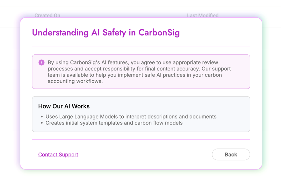 Esto incluye pautas importantes sobre Usar IA de Manera Segura en CarbonSig.