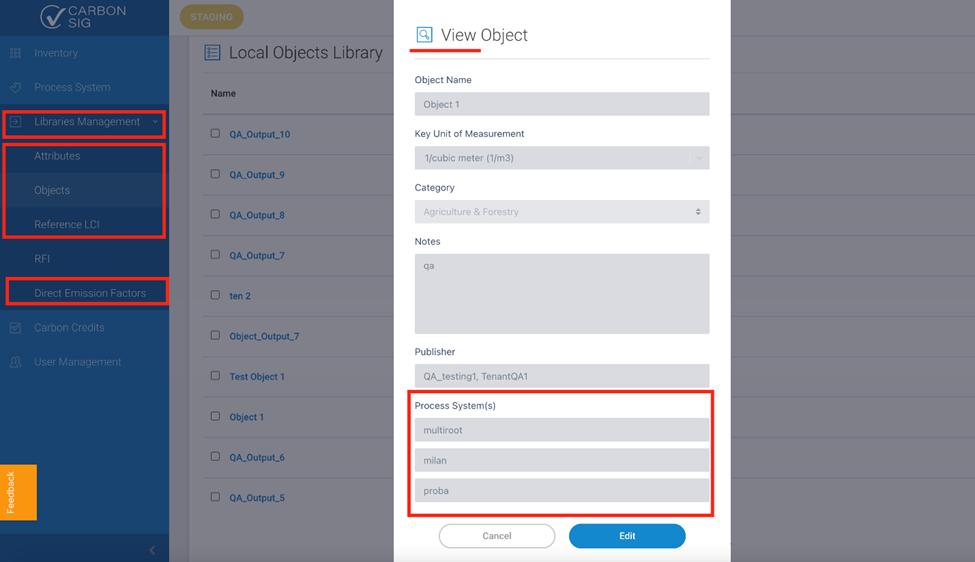 Ahora puede ver una lista de sistemas donde se usa un cierto objeto (o Atributo, LCI o EF). Esto es útil si quiere remover este objeto de su lista y ver dónde más sus cambios podrían tener un impacto. La lista se muestra en modales de Vista.
