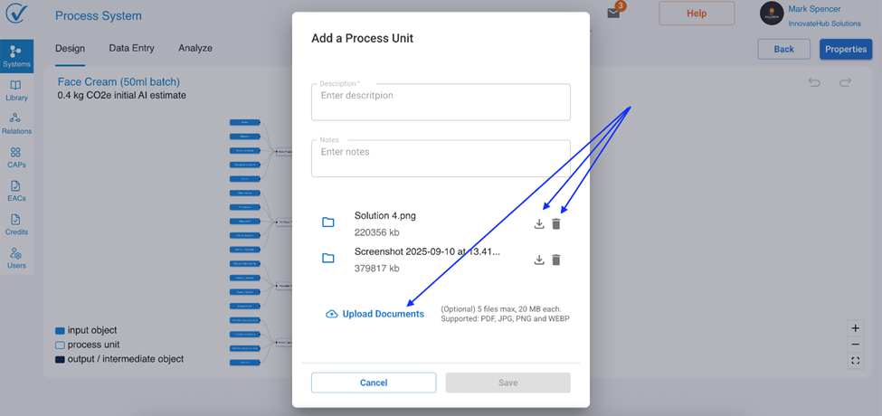这些增强功能可立即在您系统页面的所有输入、输出和流程模态框中使用,使您的碳核算更加透明、可审计和智能。