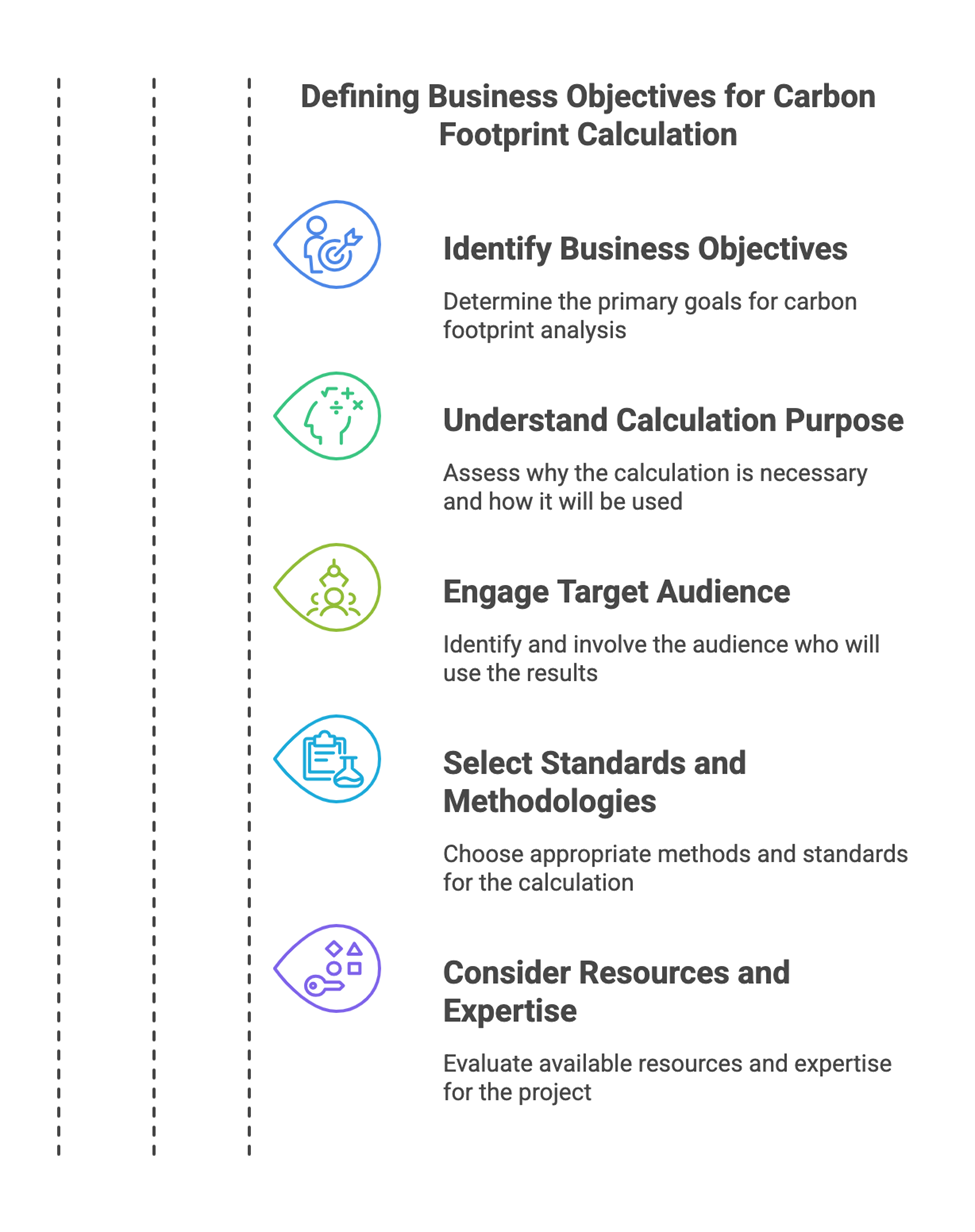 计算产品碳足迹的第一步始于明确定义推动分析的业务目标。这涉及了解为什么要进行计算以及结果将如何使用。组织可能出于各种原因进行产品碳足迹分析:识别减排机会、响应客户或投资者要求、支持产品认证或实现产品比较。这些目标直接影响方法选择和所需的准确度水平。