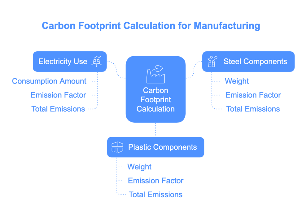 钢部件:5 kg × 2.1 kg CO₂e/kg = 10.5 kg CO₂e