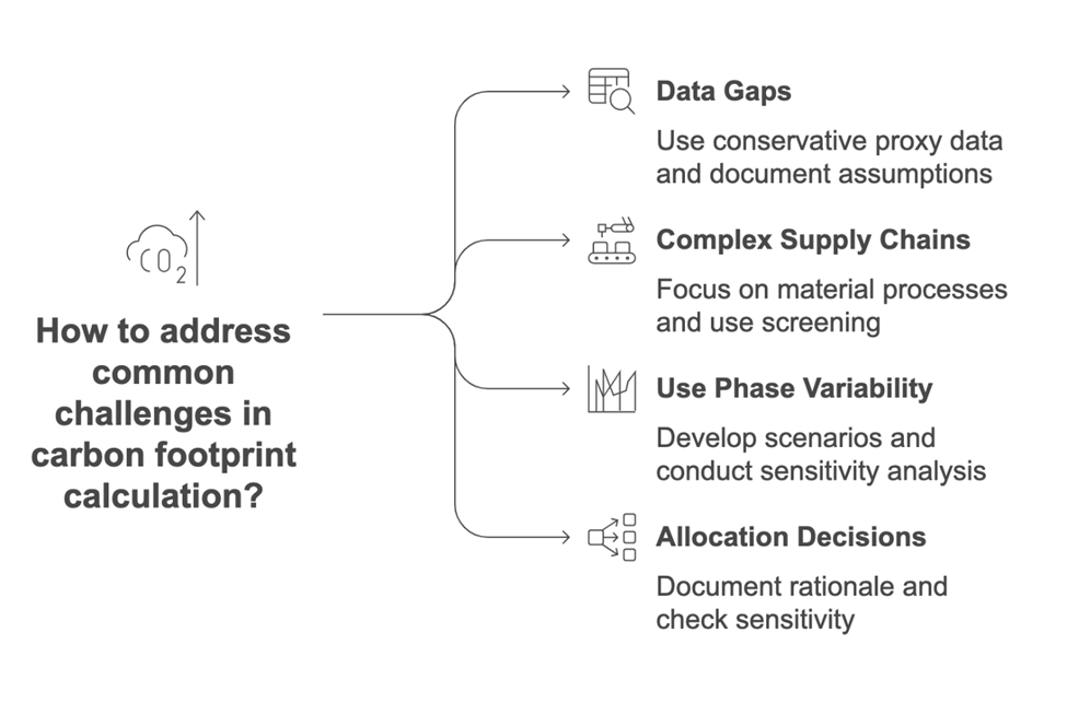 设定边界时,从业者必须一致地应用截止标准,以确定哪些过程可以在不显著影响结果的情况下排除。通常,贡献少于总质量或能量流 1% 的过程可以被排除,前提是总排除过程不超过总影响的 5%。边界设定过程还必须考虑时间和地理边界,特别是对于具有长使用阶段或全球供应链的产品。所有边界决策都应清楚记录并说明理由。