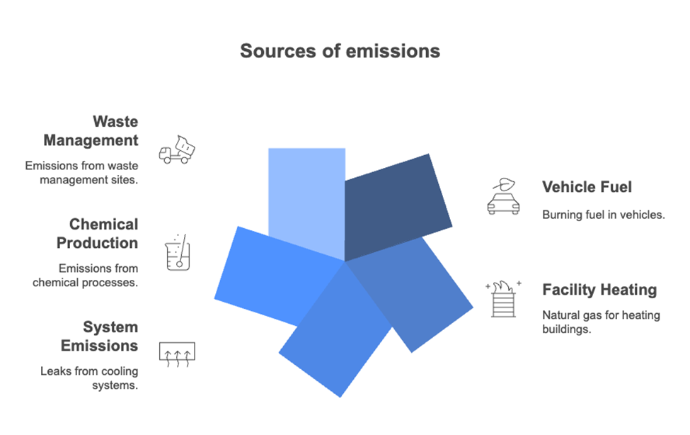 范围 1 排放是组织拥有或控制的来源产生的直接温室气体排放。这些排放是组织活动的直接结果。